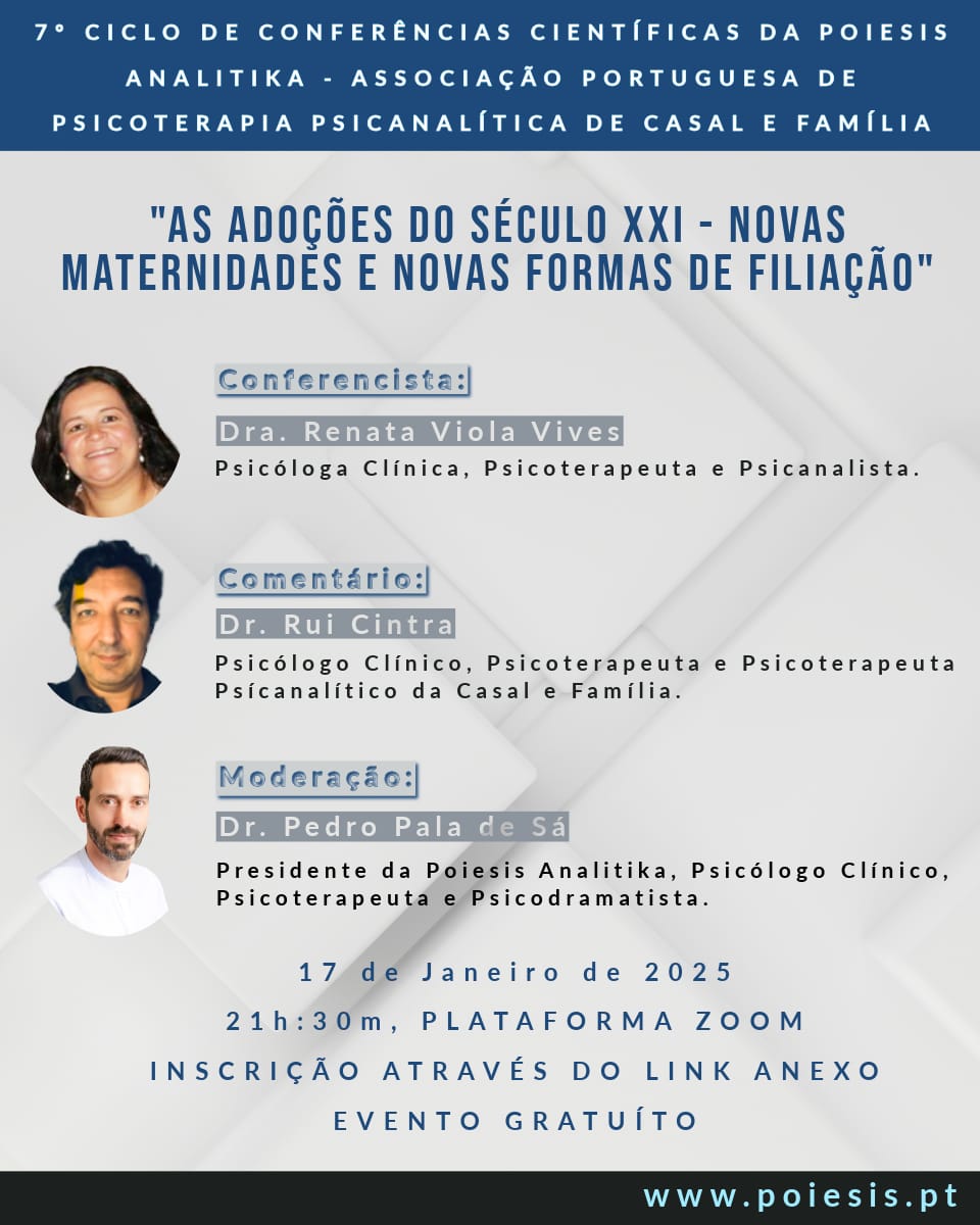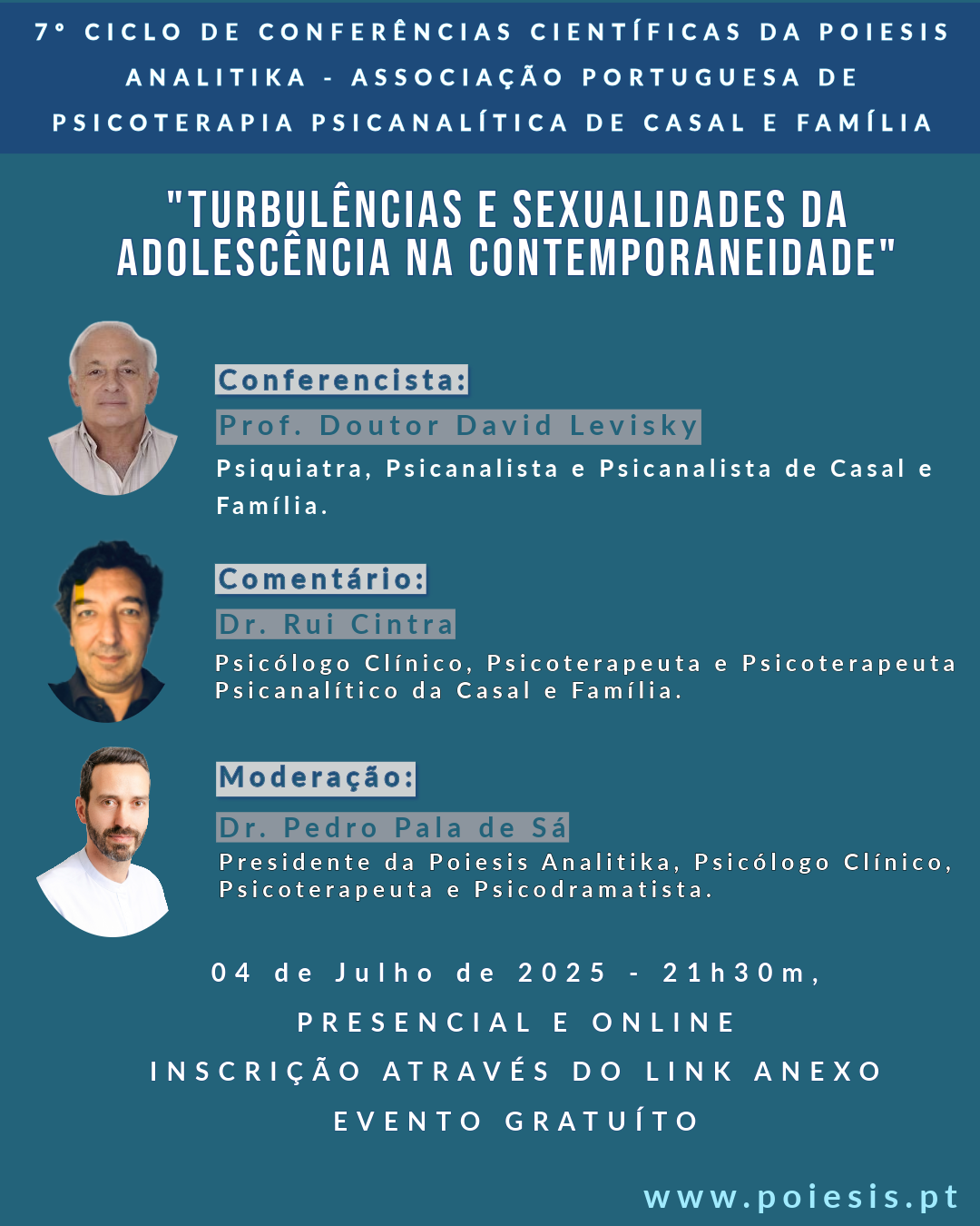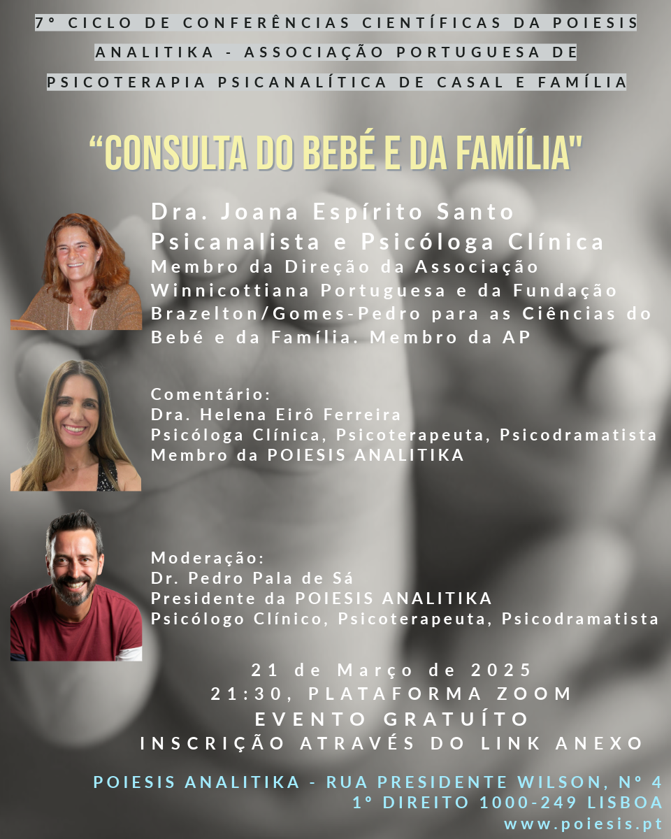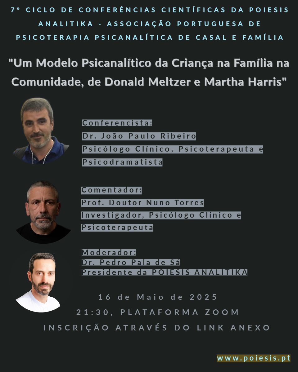 Presidente da Poiesis Analitika (Associação Portuguesa de Psicoterapia Psicanalítica de Casal e Família).